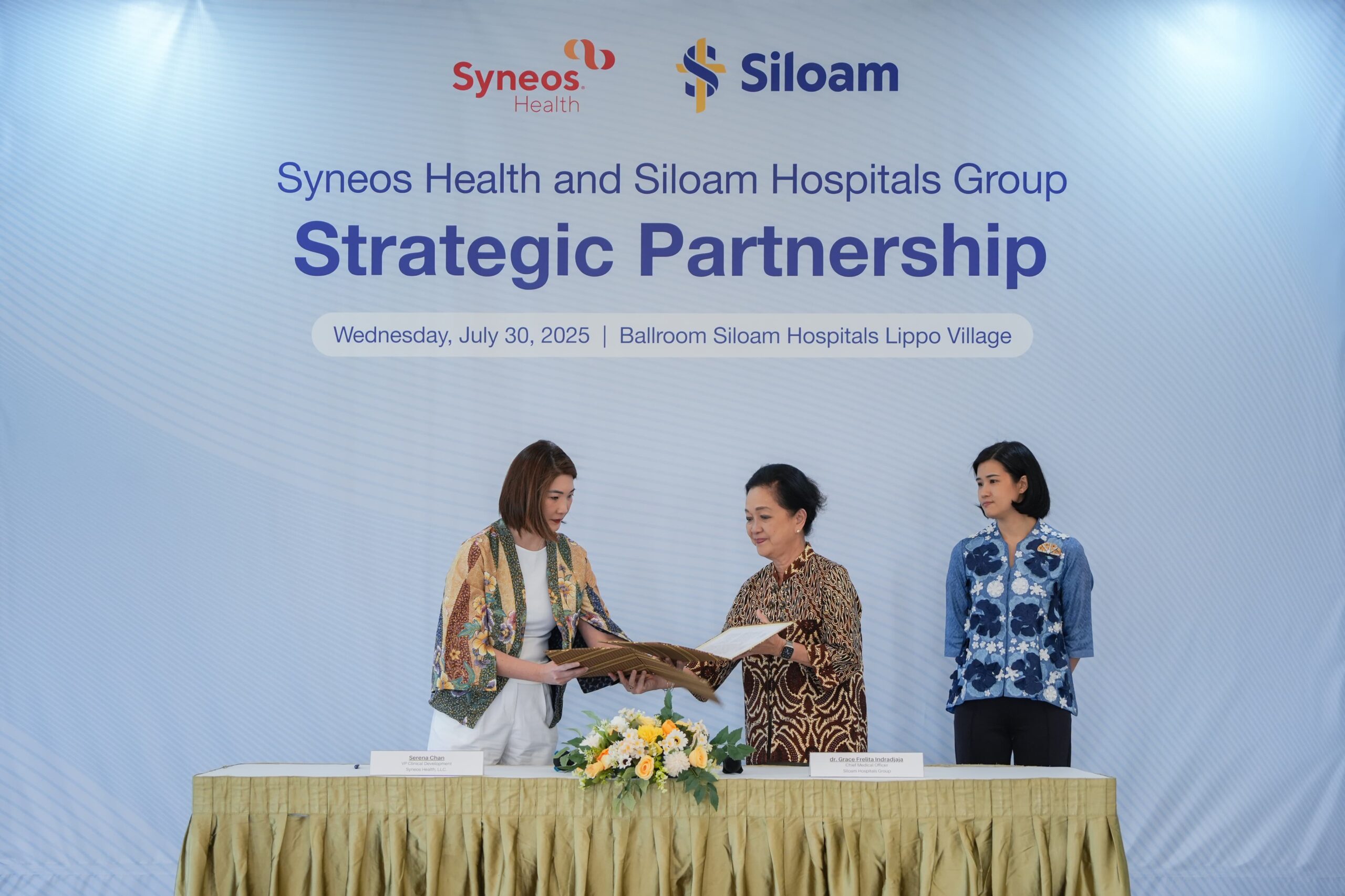 Siloam Hospitals Group (Siloam), jaringan rumah sakit swasta terkemuka di Indonesia dan Syneos Health, sebuah organisasi penyedia solusi biofarmasi global terkemuka yang berbasis di Amerika Serikat, menandatangani nota kesepahaman (Memorandum of Understanding/MoU) untuk melakukan riset dan studi klinis sesuai dengan standar internasional. Penandatanganan ini dilakukan di Tangerang pada Rabu 30 Juli 2025 oleh masing-masing wakilnya, yaitu dr. Grace Frelita selaku Medical Managing Director Siloam Hospitals Group, dan Serena Chan selaku VP Clinical Development Syneos Health. Melalui kerja sama ini, pasien Siloam berpotensi mendapatkan akses lebih awal terhadap terapi dan metode pengobatan yang inovatif dan terbaru.